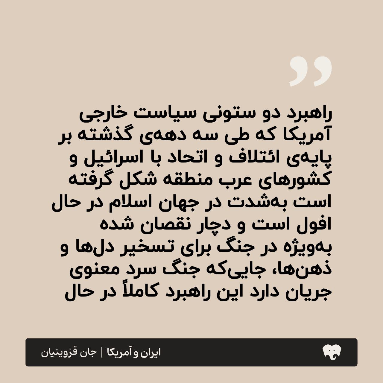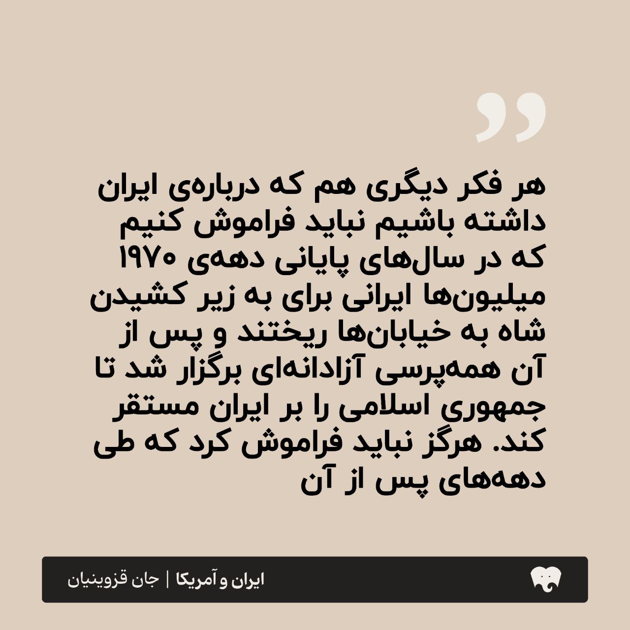 کتاب «ایران و آمریکا: تاریخ یک رابطه از 1720 تا 2020» نوشته جان قزوینیان، یک بررسی جامع و دقیق از روابط پیچیده و چندوجهی بین ایران و ایالات متحده آمریکا است. این کتاب با نگاهی تاریخی به تحولات سیاسی، اقتصادی و فرهنگی که بر این رابطه تأثیر گذاشتهاند، میپردازد. از نخستین تماسهای تجاری در قرن هجدهم تا تحولات معاصر، نویسنده با استفاده از منابع متنوع و تحلیلهای عمیق، تصویری روشن از چالشها و فرصتهای این رابطه ارائه میدهد. این اثر برای کسانی که به تاریخ معاصر ایران و سیاست خارجی علاقهمندند، منبعی ارزشمند و آموزنده است.
