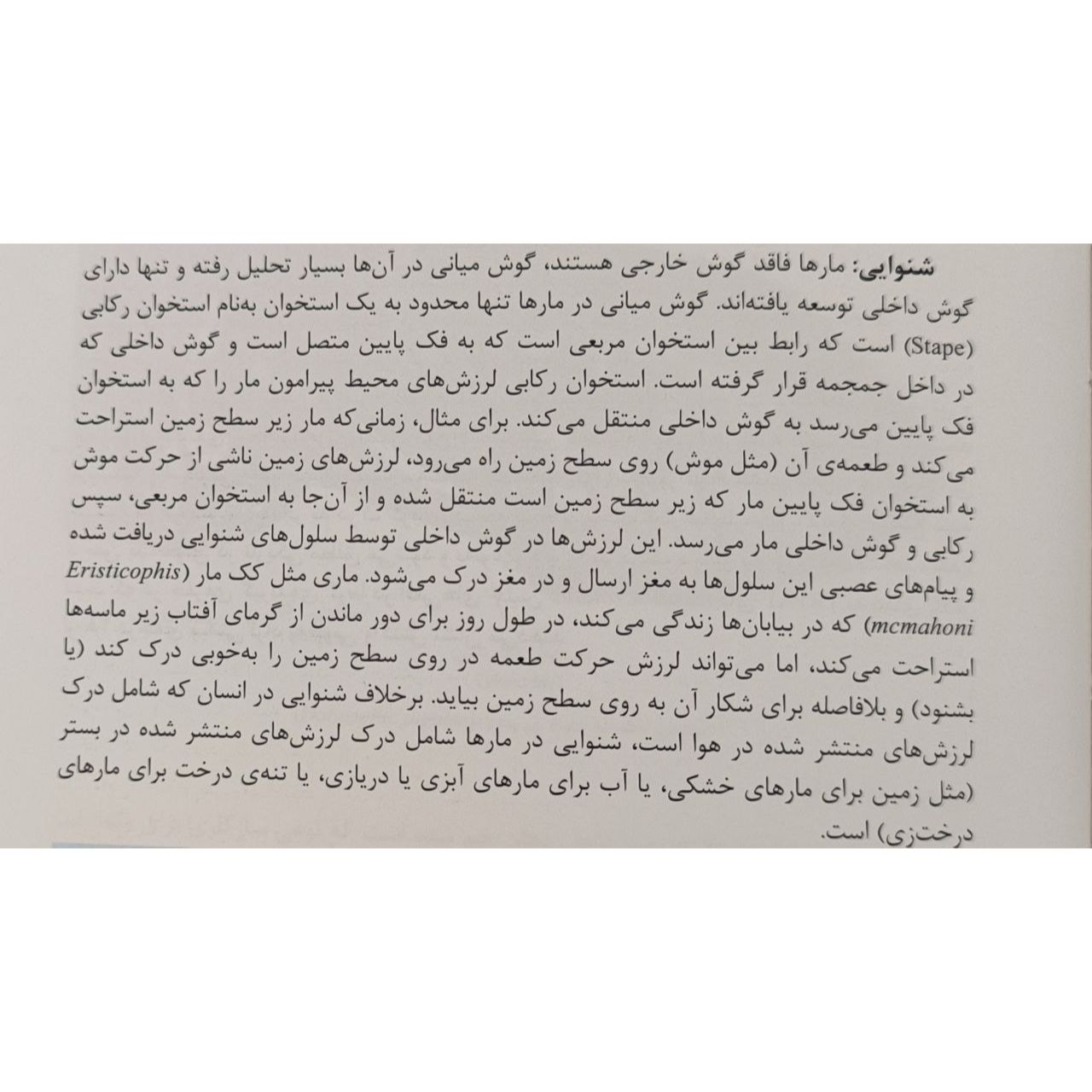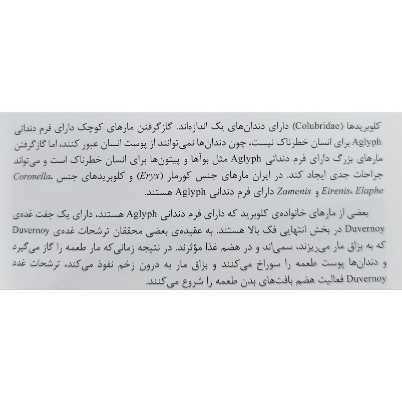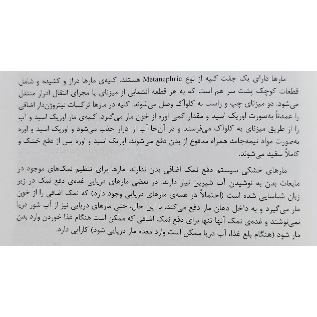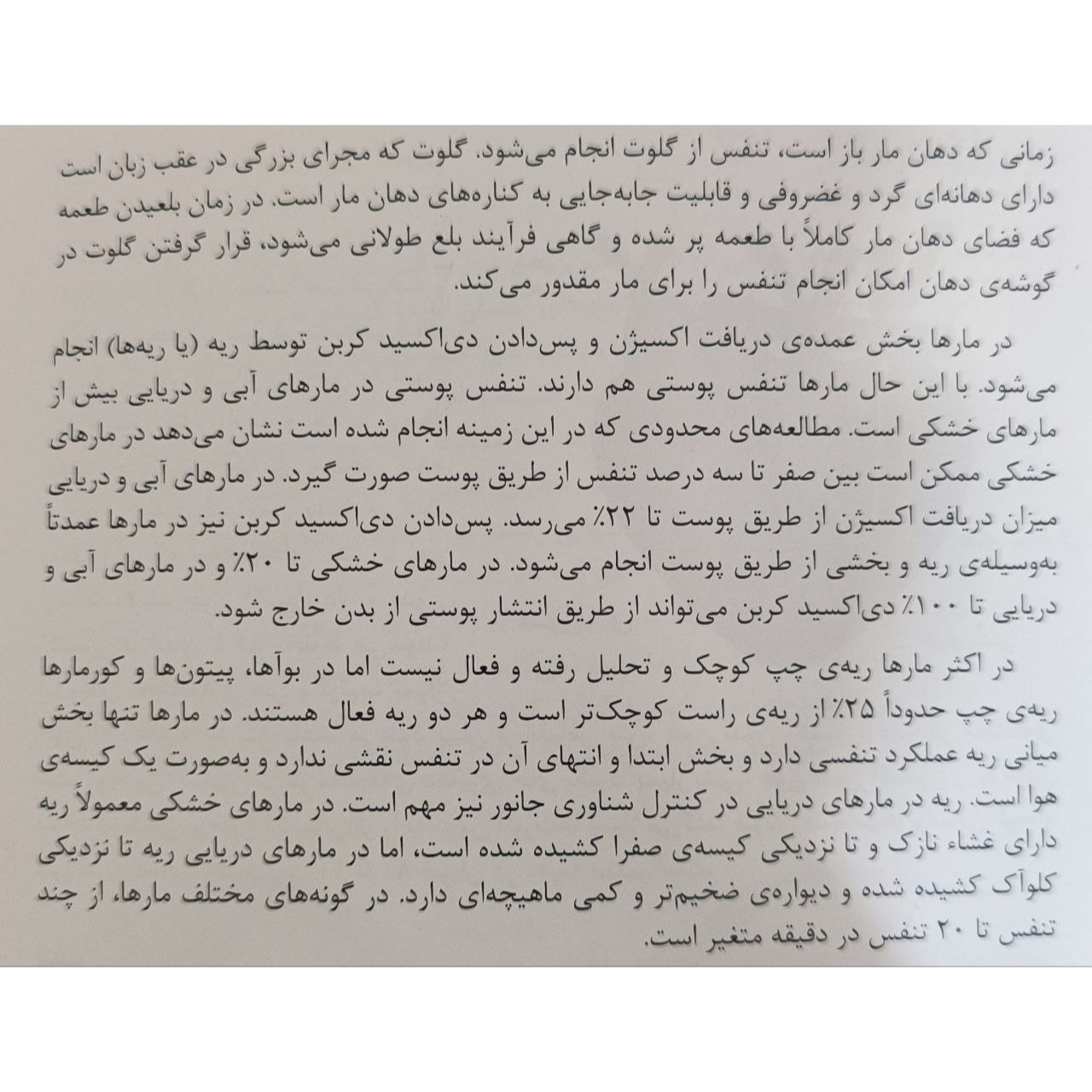 بخش اول کتاب توضیحات کلی در مورد مارها و اهمیت آنها در اکوسیستم ارائه میدهد که برای افرادی که علاقهمند به حیات وحش و بهویژه خزندگان هستند، بسیار مفید است. بخش دوم کتاب به معرفی گونههای مختلف مارهای ایران میپردازد که با تصاویر با کیفیت و توضیحات جامع همراه است. این بخش برای شناسایی و آشنایی با مارهای بومی ایران بسیار کاربردی است.